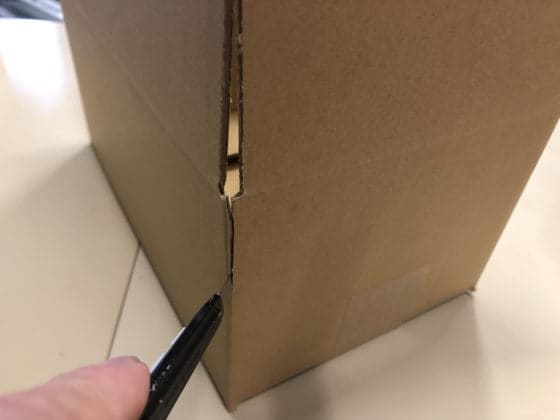 ここで、もし箱の出っ張りが引っかかりそうなときは、切り落とします。