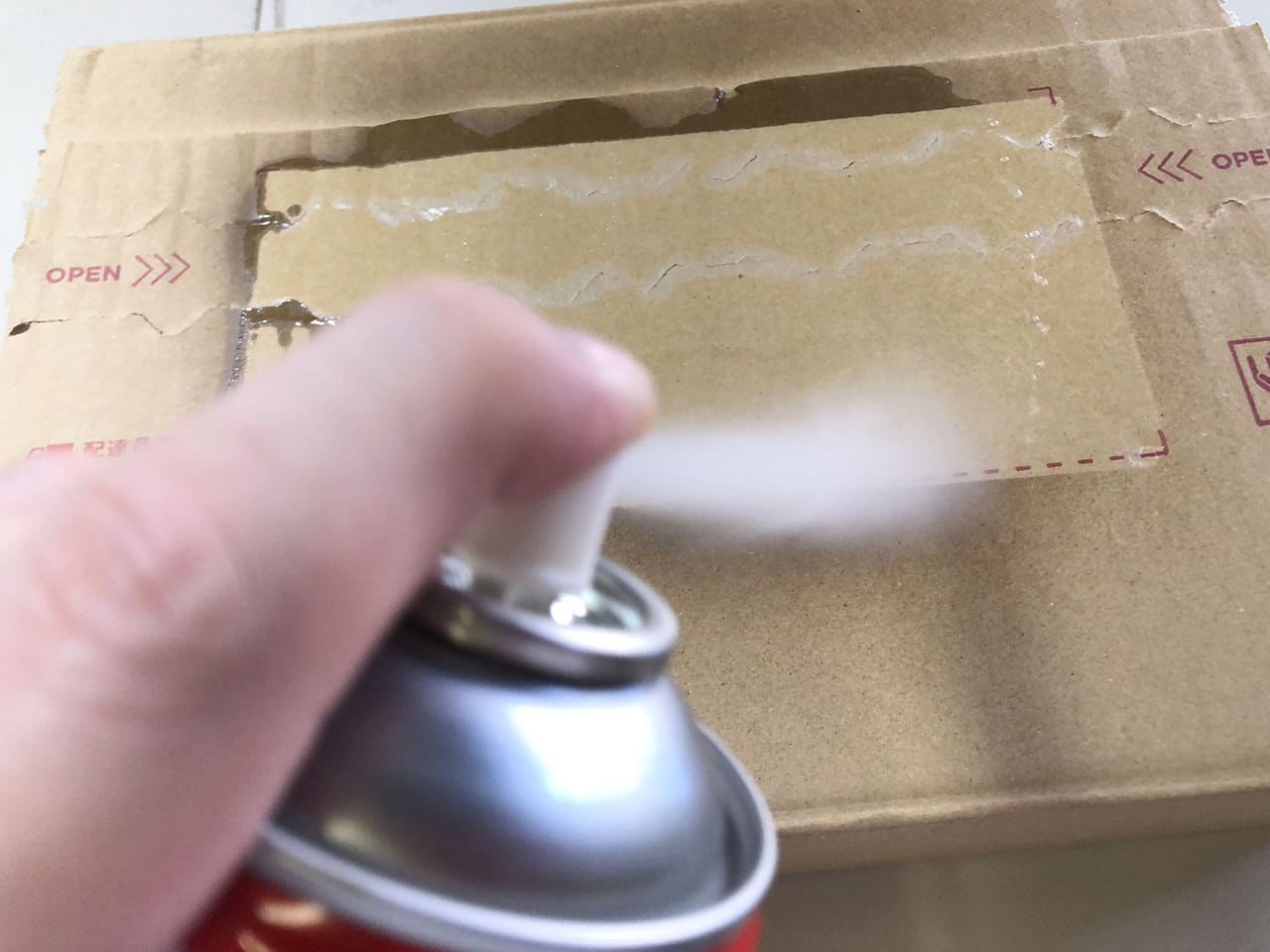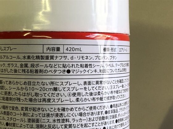 説明書きに、目立たない所で事前に確認しなさいとあったので、処分予定のダンボール箱を使ってシールの無いところにスプレーしてチェックしました。