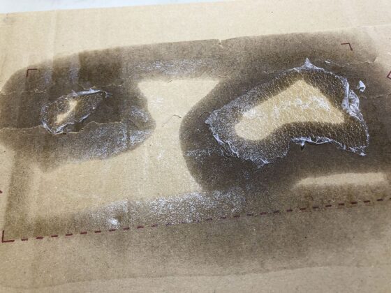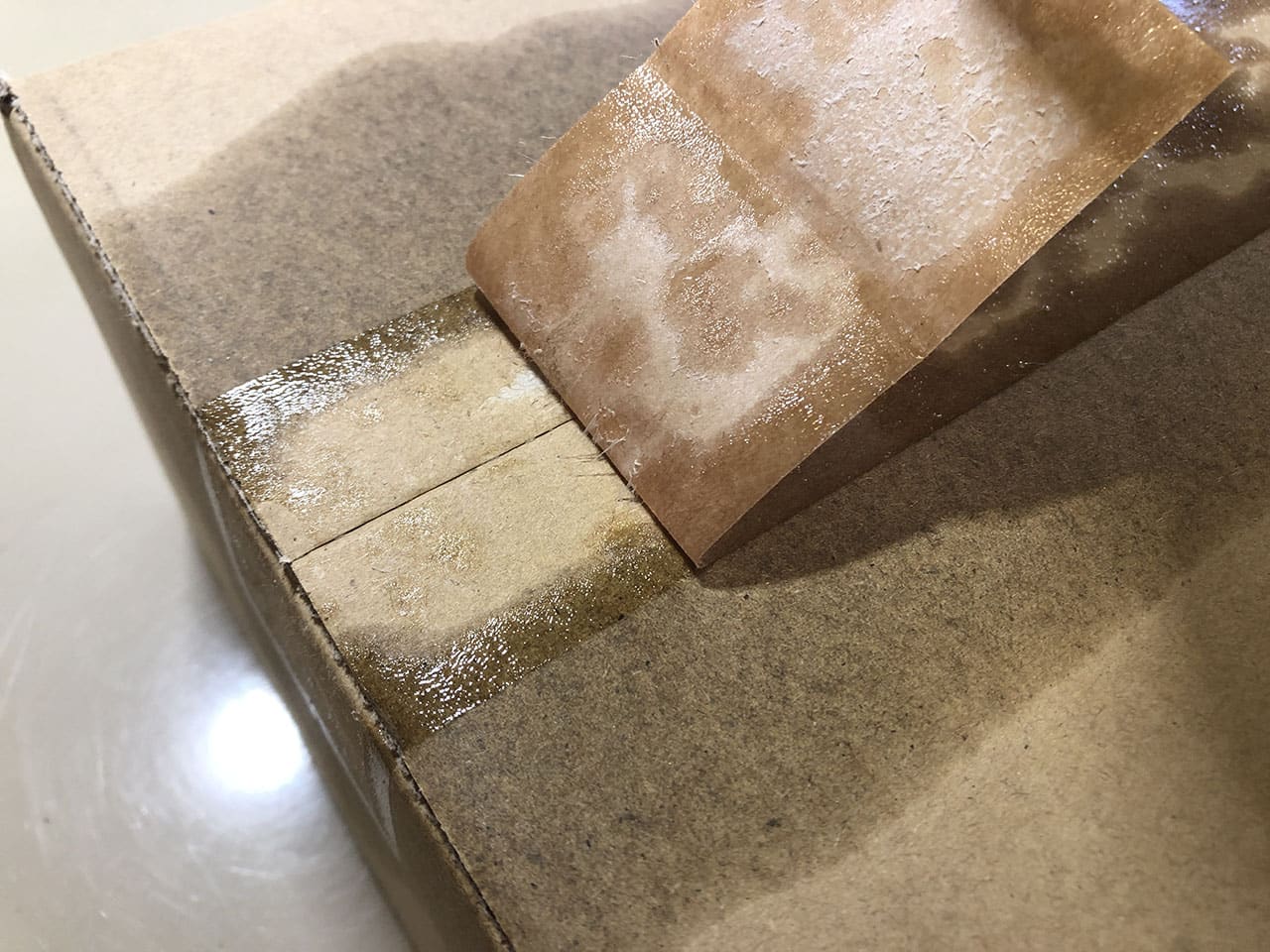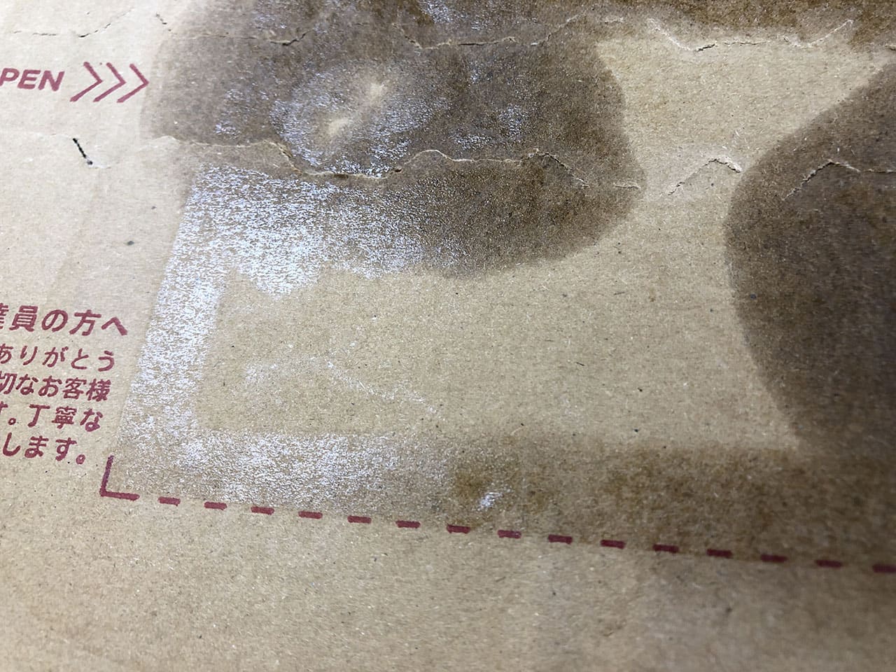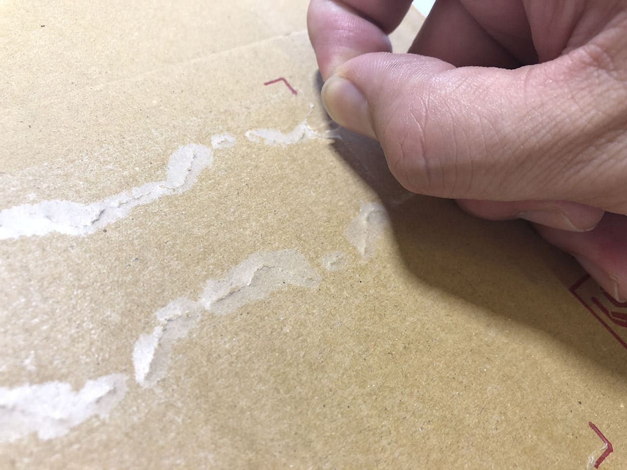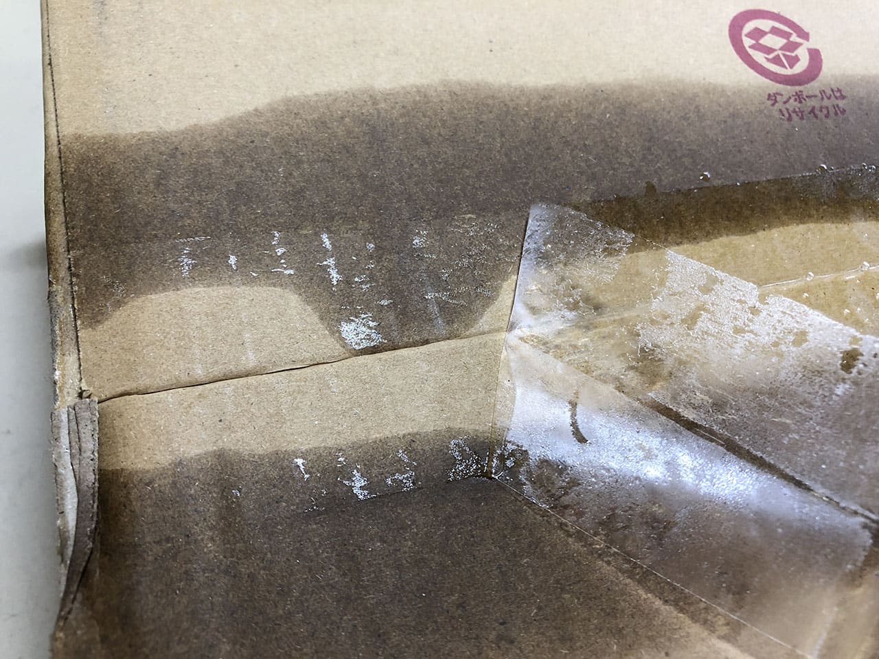 途中の液剤がよく染みていない部分は、ダンボールも一緒に剥がれてしまいました