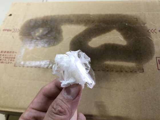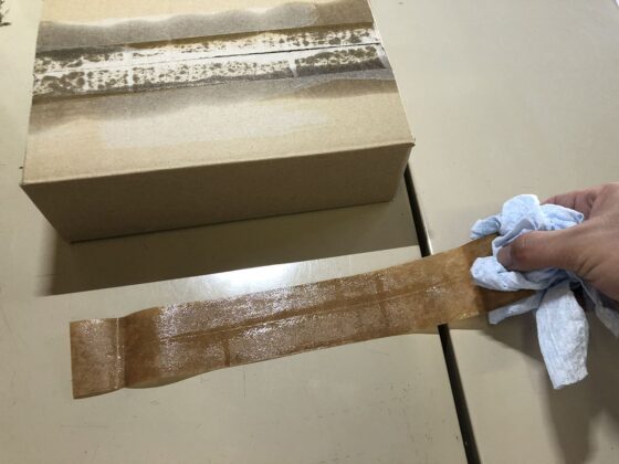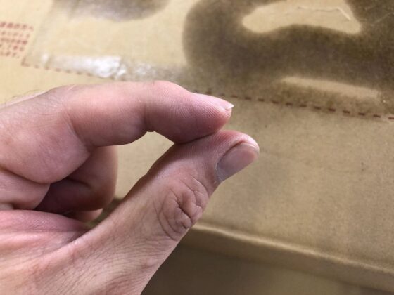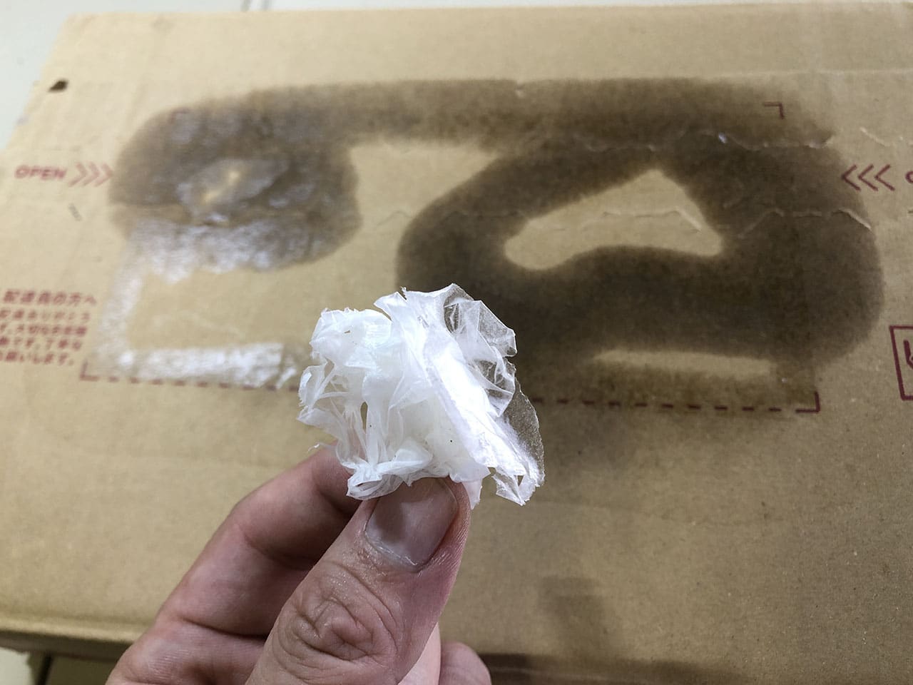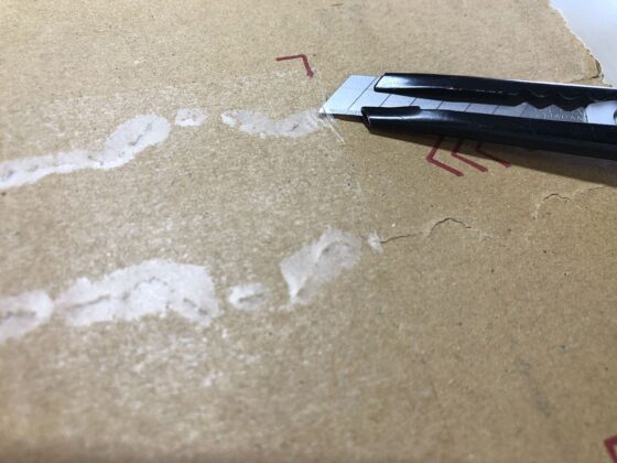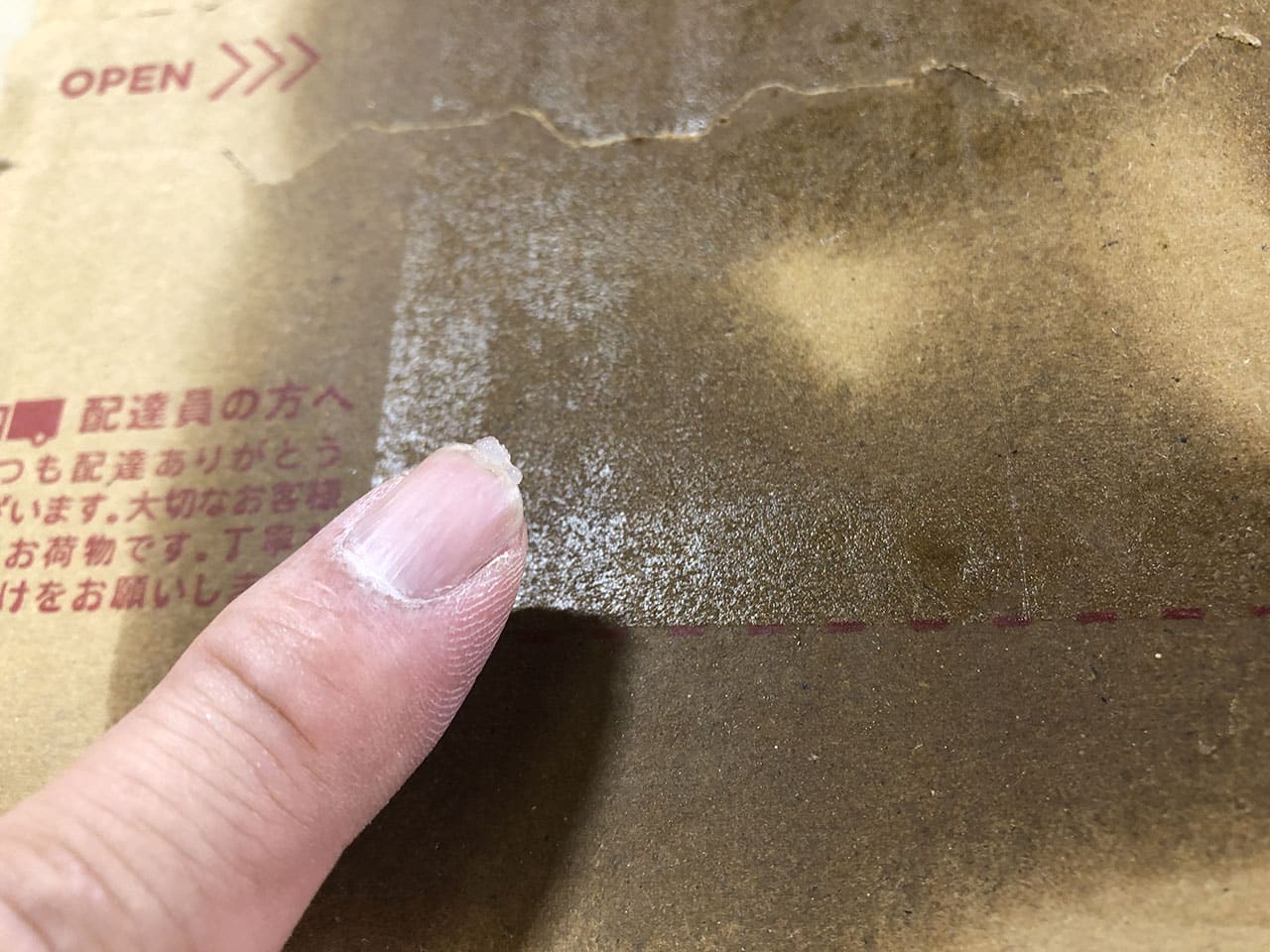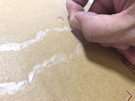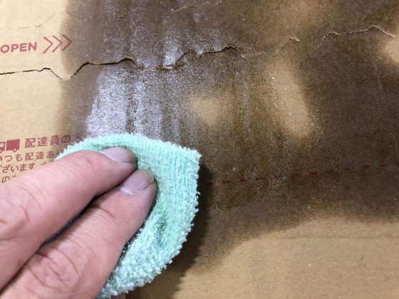 この後、ダンボールに残った糊を除去しますが、指先がベトベトしてると作業がしにくいので、この時点で落としておくといいです。