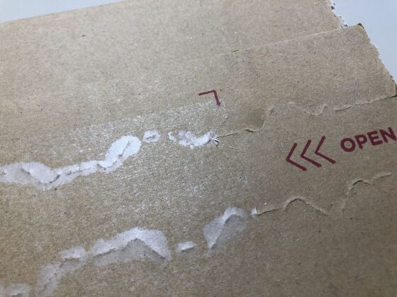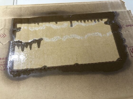 今回使ったモノタロウさんのシール剥がし剤は、ダンボール・紙専用ではないので、専用のものを使えばもっと違う結果になったのかどうか、専用のものがあったら試してみましょうか。