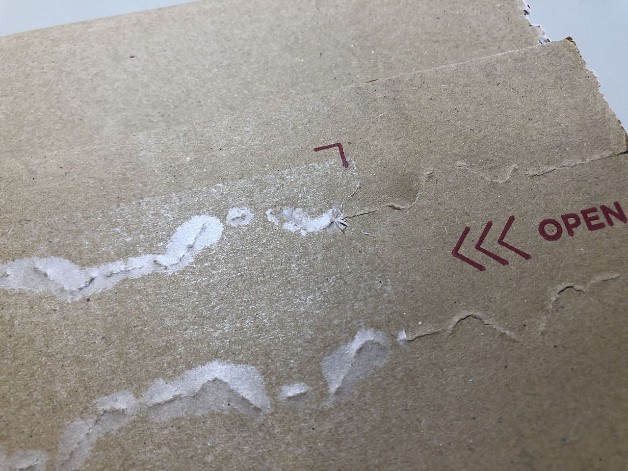 ゆっくり剥がせばダンボールにダメージ無く剥がれていきましたが