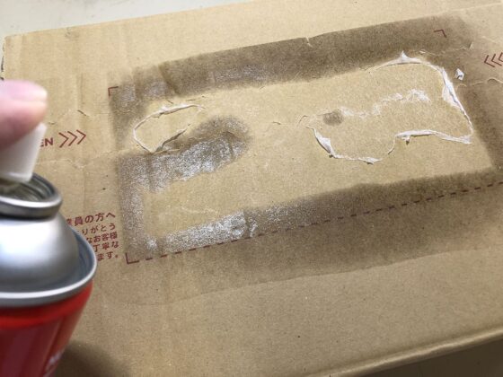 ということは、テープ全体の色が変わるほどたっぷりスプレーすれば、ダンボールは剥がれずにキレイにテープだけ剥がせる可能性があります。