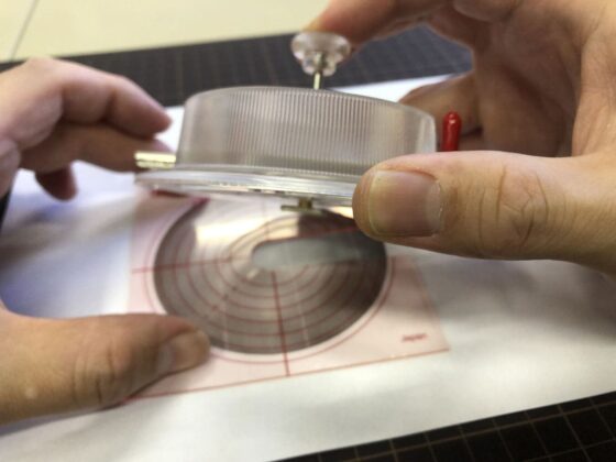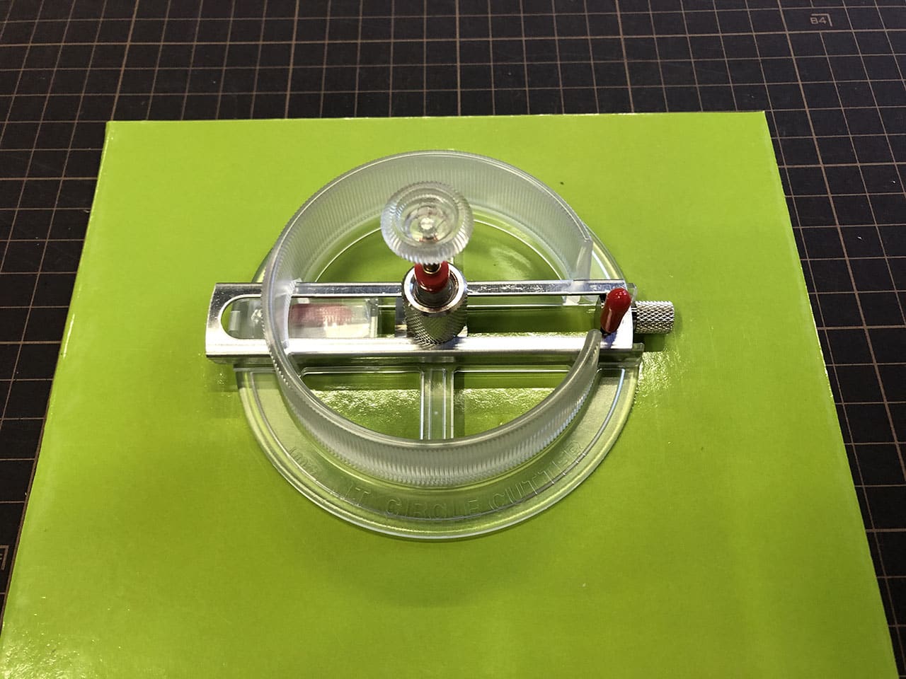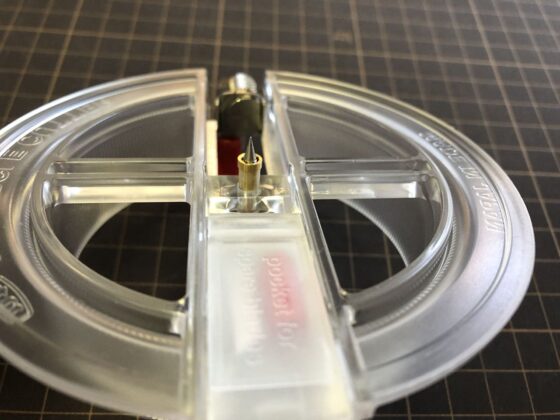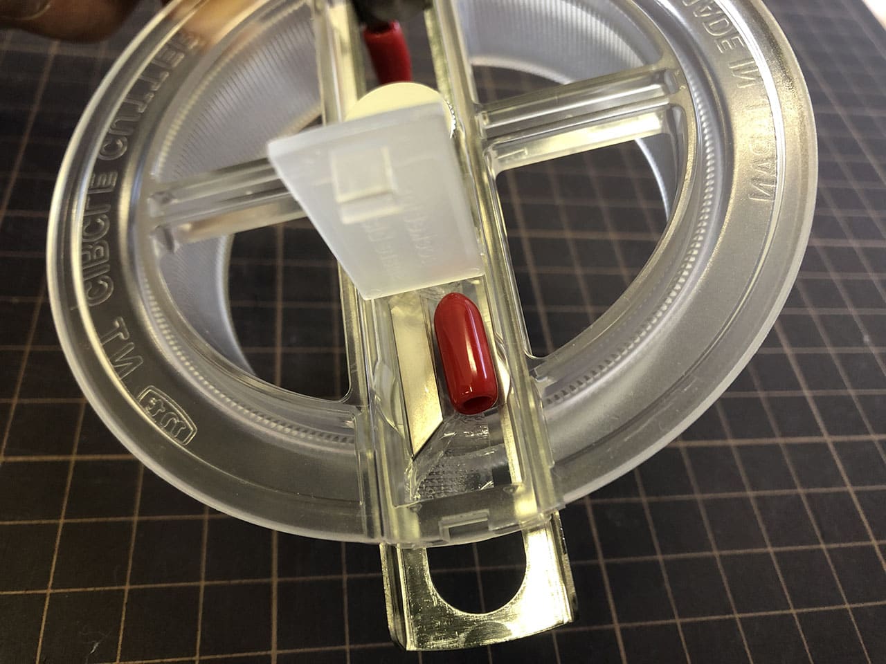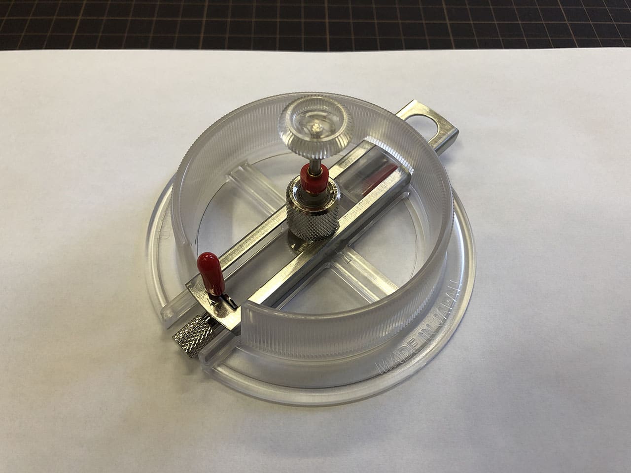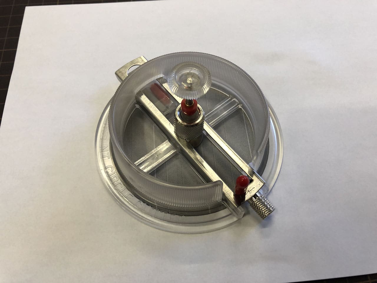 コンパス的なカッターだと中心に針の穴が開いてしまいますが、これは針の穴が開かないタイプのカッターです。