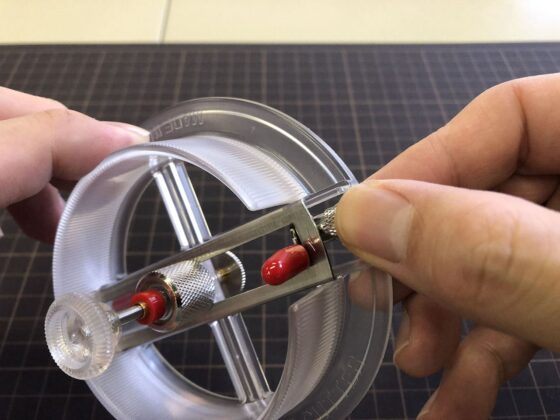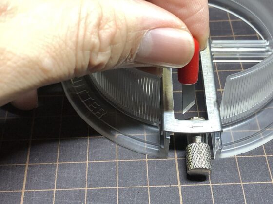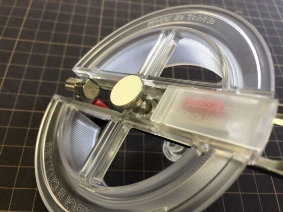 また、切る紙が厚いときや小さいとき、切る場所が滑りやすいときは、切る紙も一緒に回ってしまうので、中心を押さえる方の指で紙も押さえるか、紙をテープなどで固定して切った方が切りやすかったです。