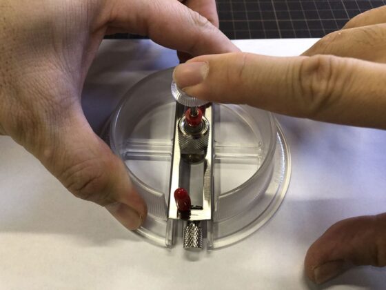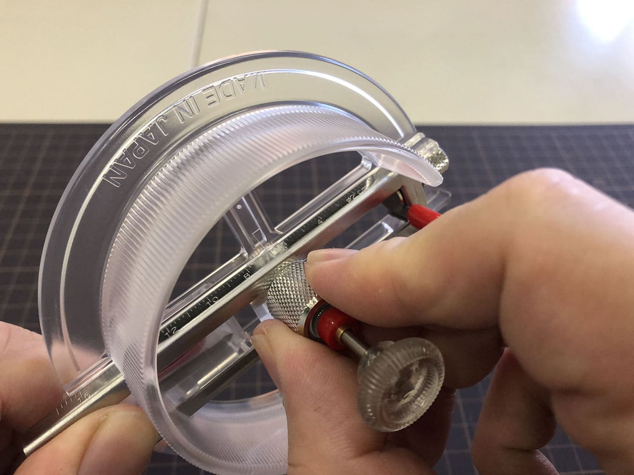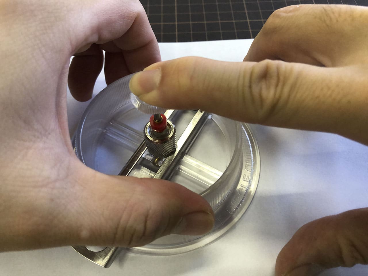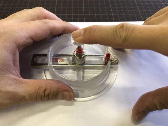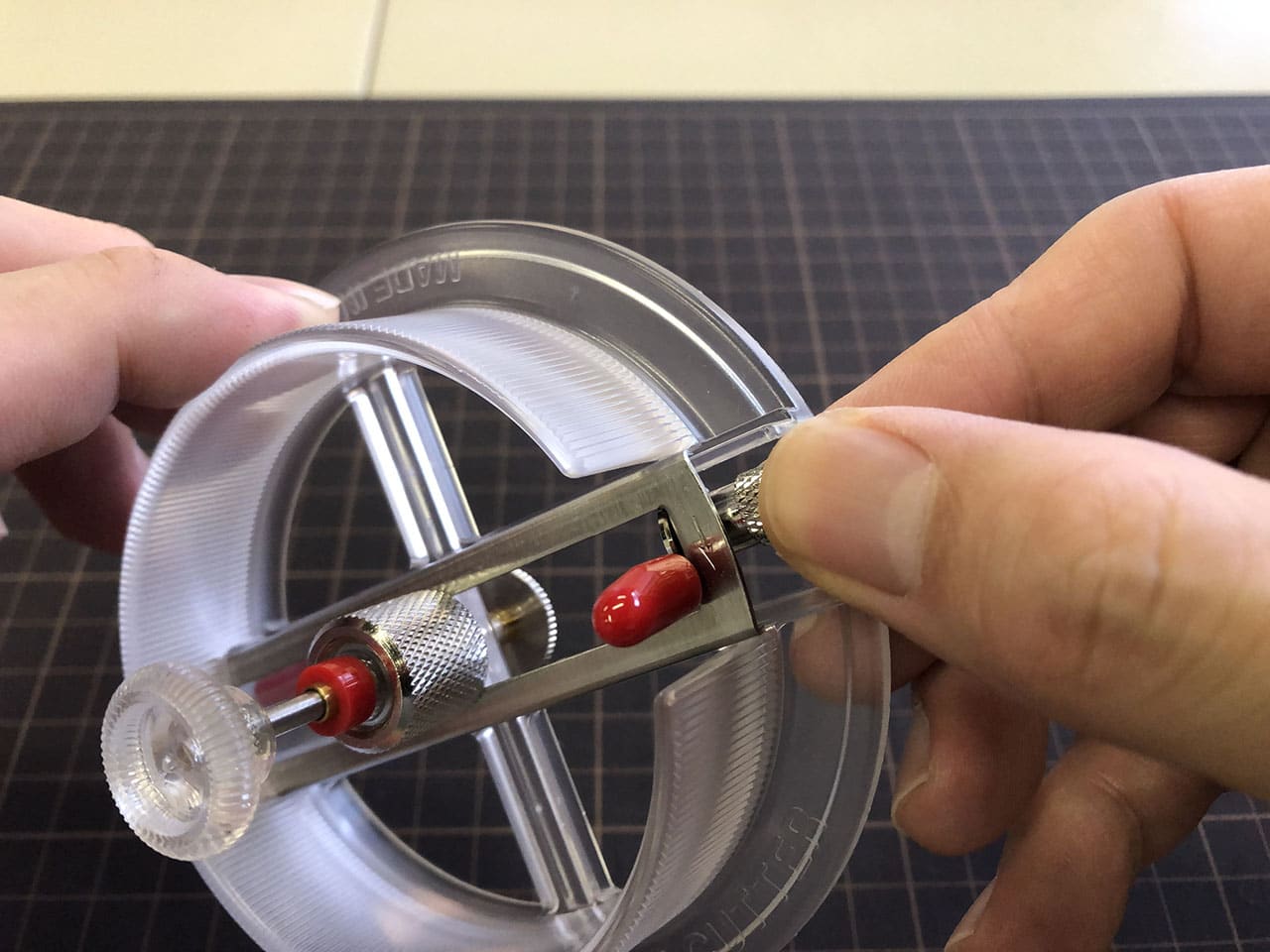 半径を決めるために中心のネジを緩めて
