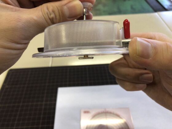 白い場所に透明な丸いステッカーを貼る予定なので、その下地になる濃色のマーキングフィルムを切るためにも使うことにします。