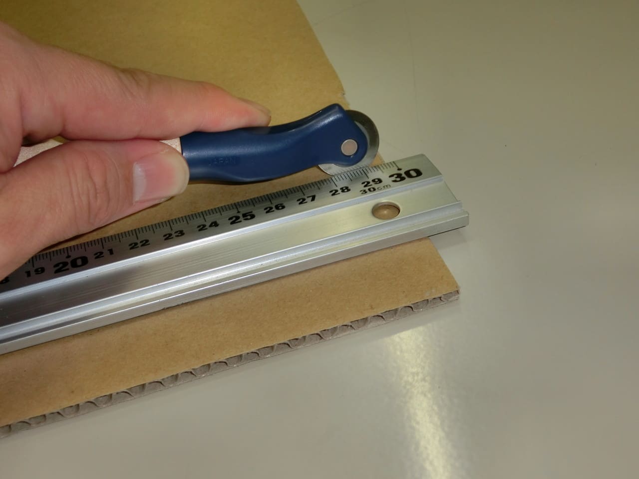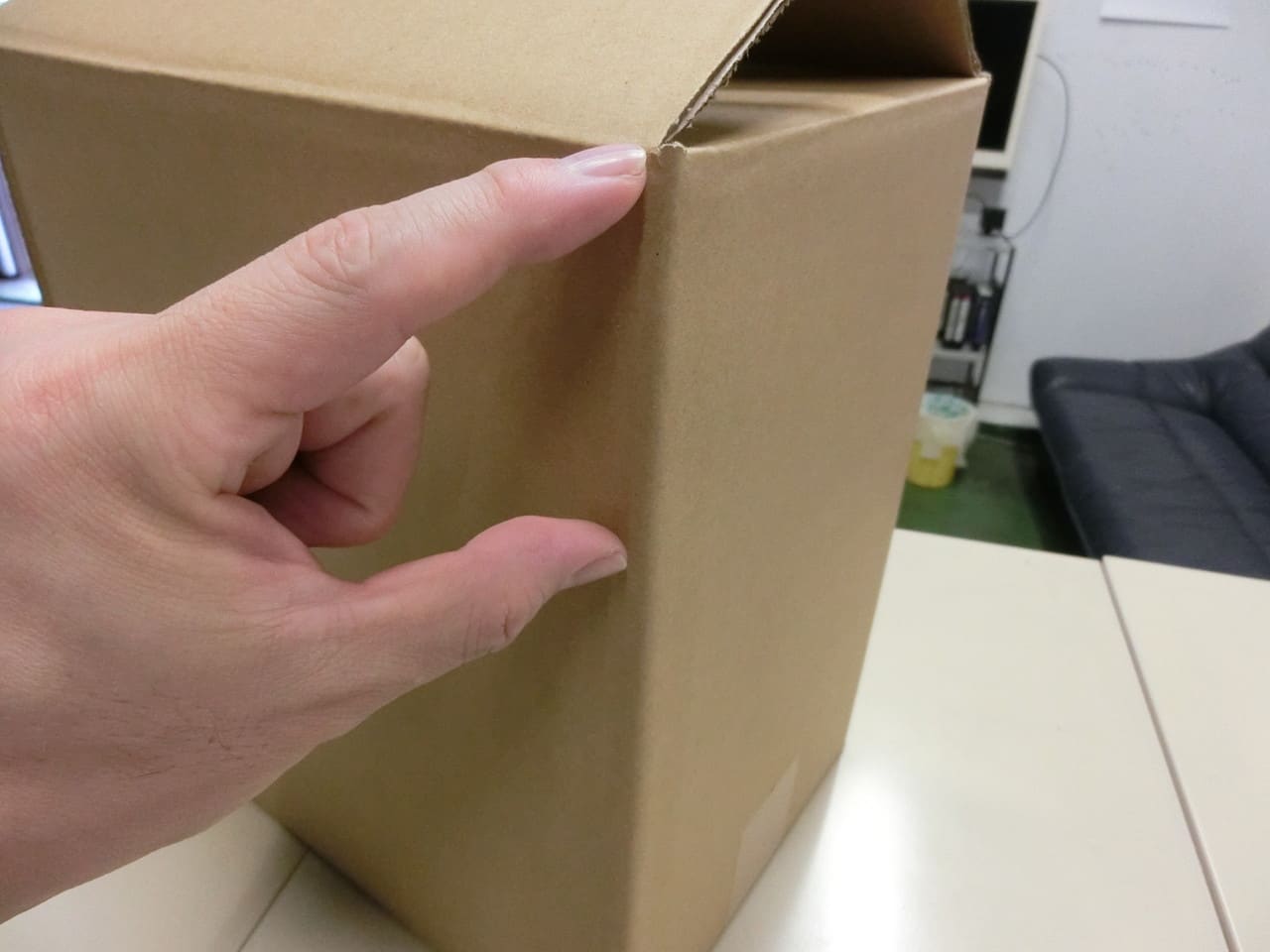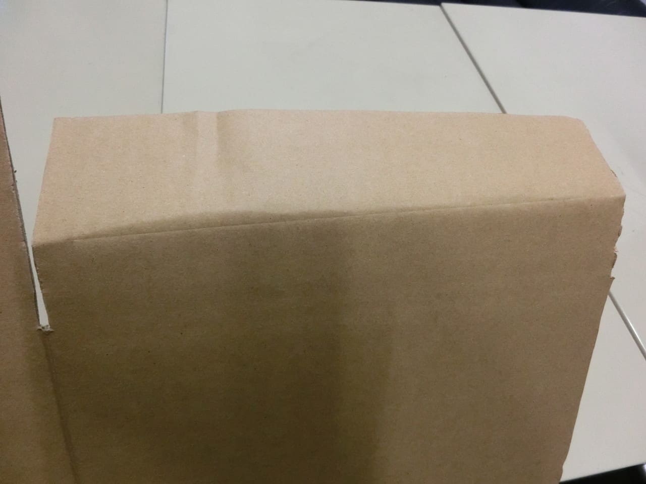 ということは、ダンボールの内側からしっかりした折り目を付ける必要があるということですが、これが難しい。