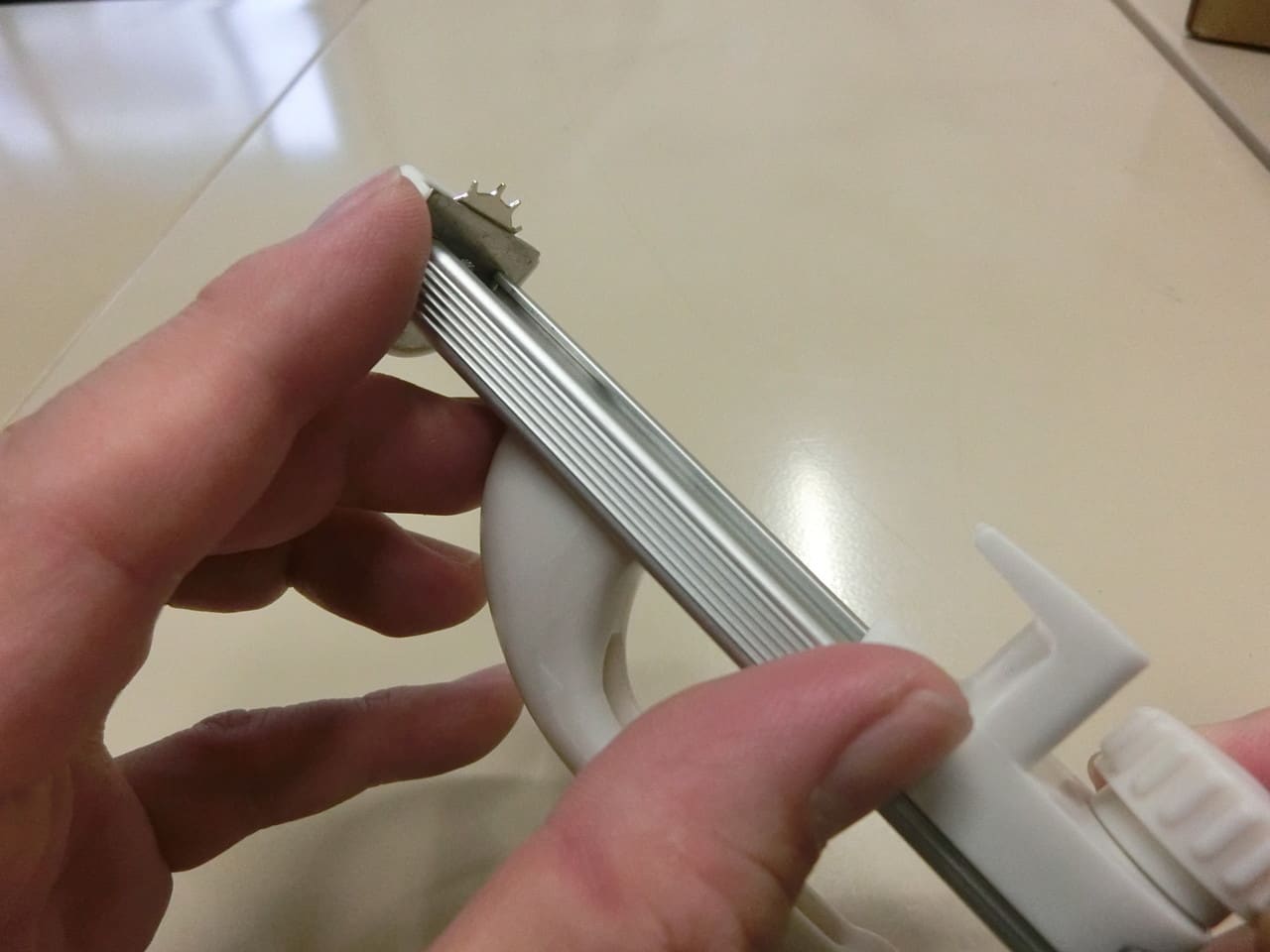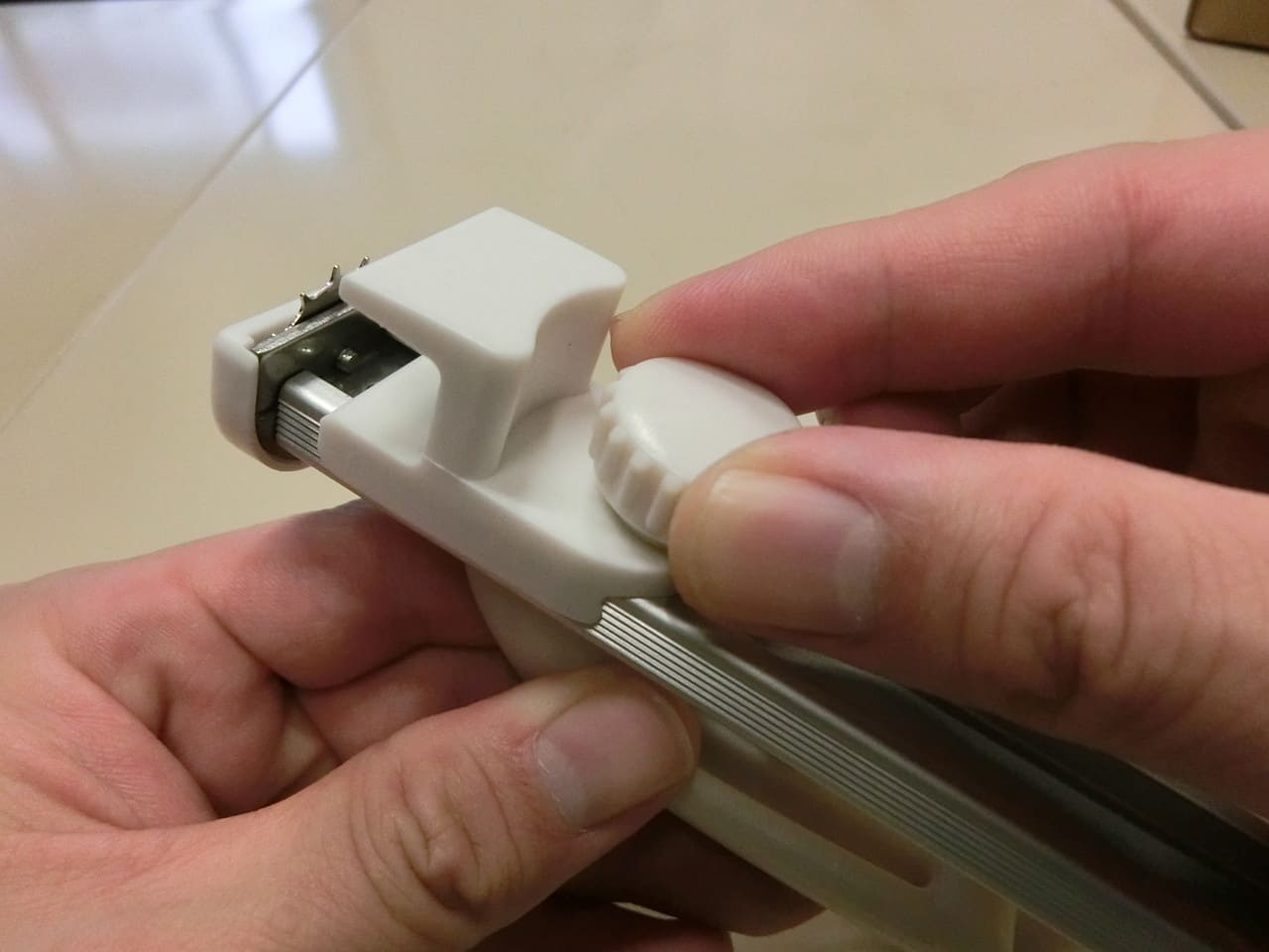 メーカーの解説通り、箱の上から押さえつけるようにスライドさせるようにしましょう。(この記事の最後にある動画参照)