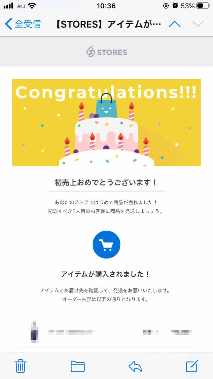 一昨日、STORESで初めて注文をいただきました。