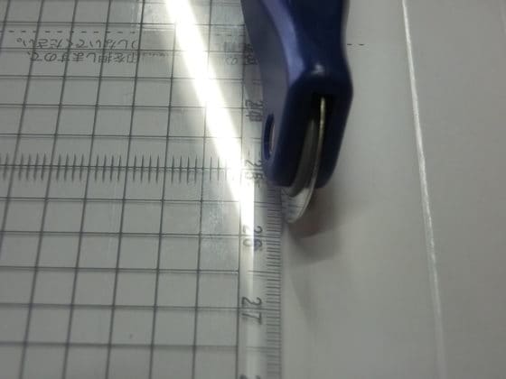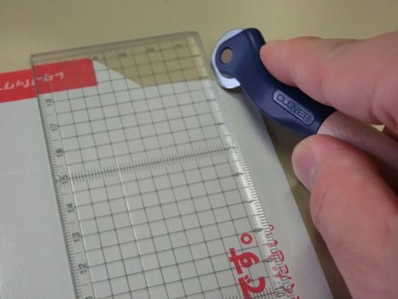 それに、刃が小さいので厚みのある定規だと軸受の部分が定規に当たって直線の折り目が付かないので、もっと角度を付けるか、目盛りが付いた側を使うのがいいです。