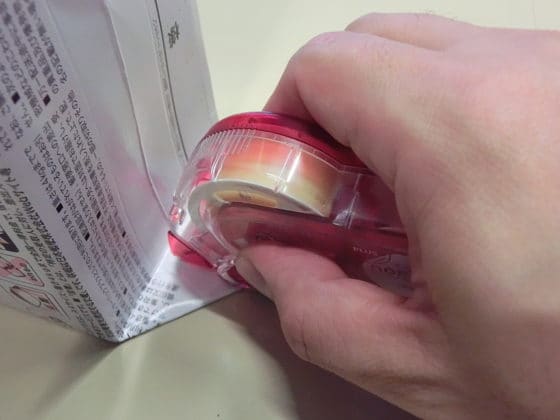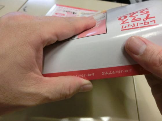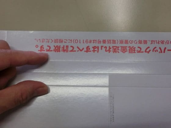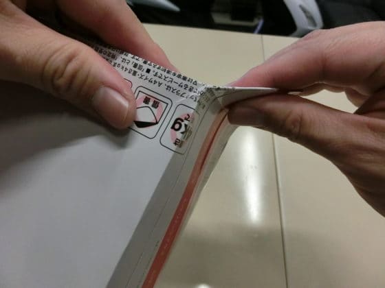 配達証は剥がしやすくなっているので、その部分で箱を折ると配達証の一部が浮いて剥がれやすくなるわけです。