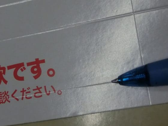 厚紙が僅かでも裂けると、裂けた部分から穴が開くこともあるようなので、折り目が裂けたりインクの色が付くボールペンは避けたい。
