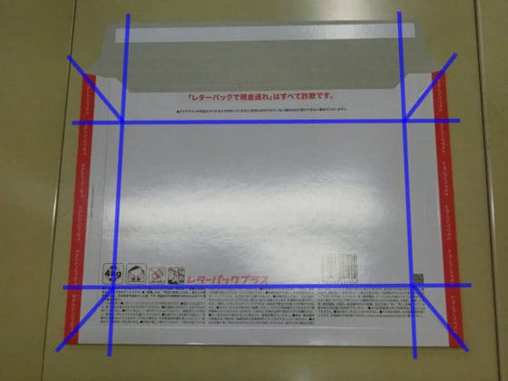 レターパックの4つの辺を表面と裏面から折り目を入れて、マチになる部分にも折り目を入れます。