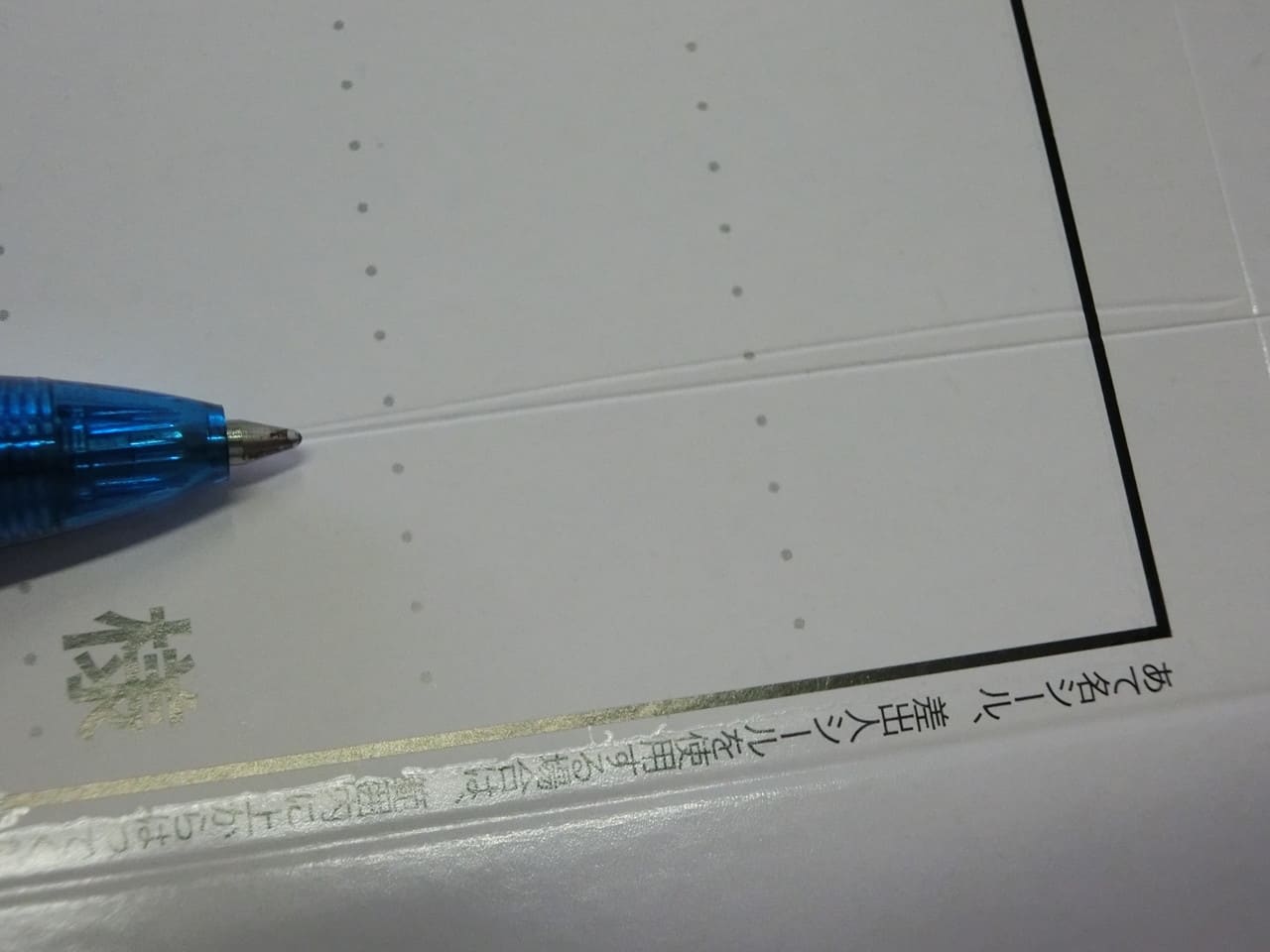 厚紙が僅かでも裂けると、裂けた部分から穴が開くこともあるようなので、折り目が裂けたりインクの色が付くボールペンは避けたい。