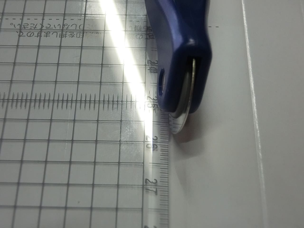 それに、刃が小さいので厚みのある定規だと軸受の部分が定規に当たって直線の折り目が付かないので、もっと角度を付けるか、目盛りが付いた側を使うのがいいです。