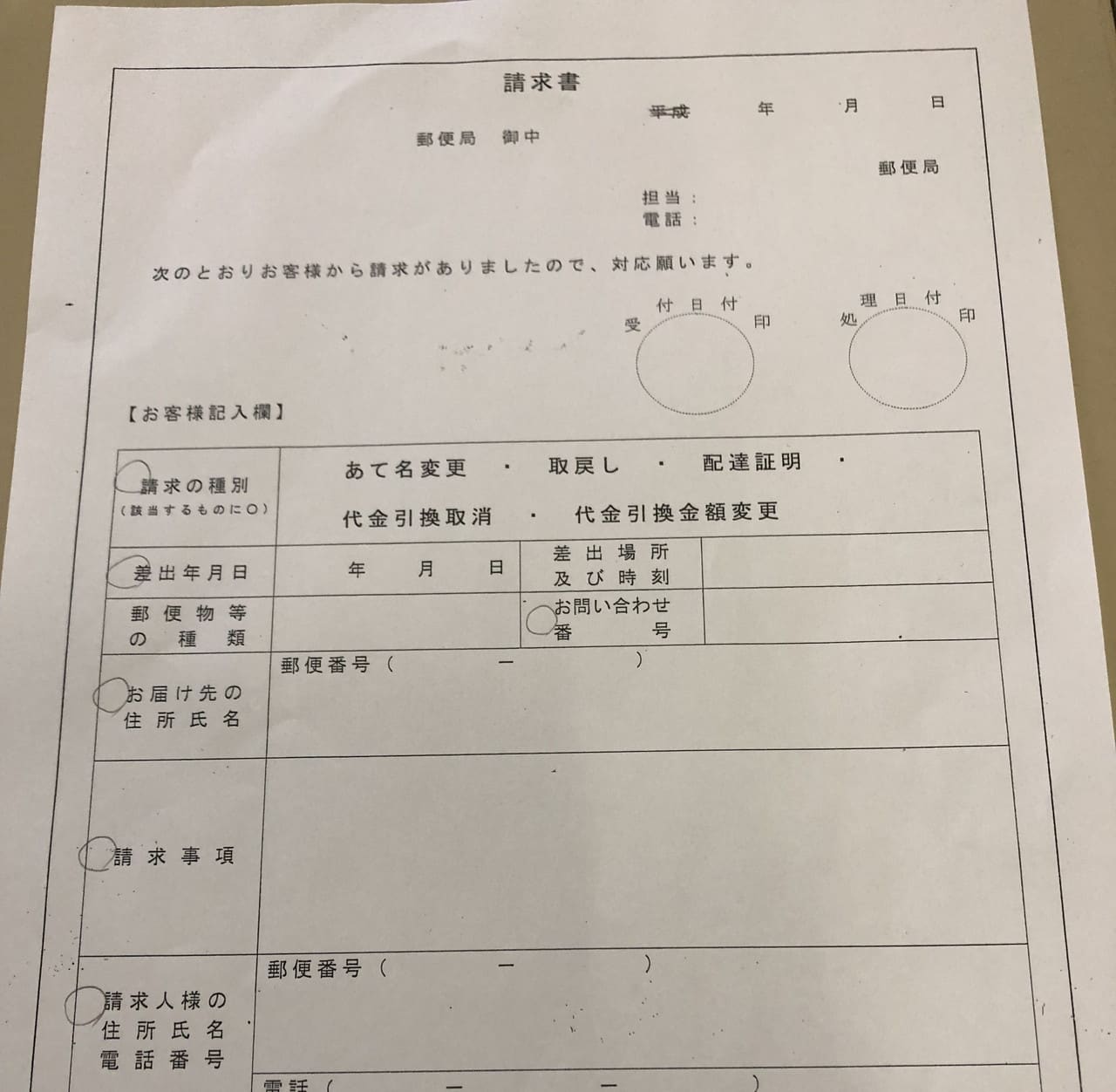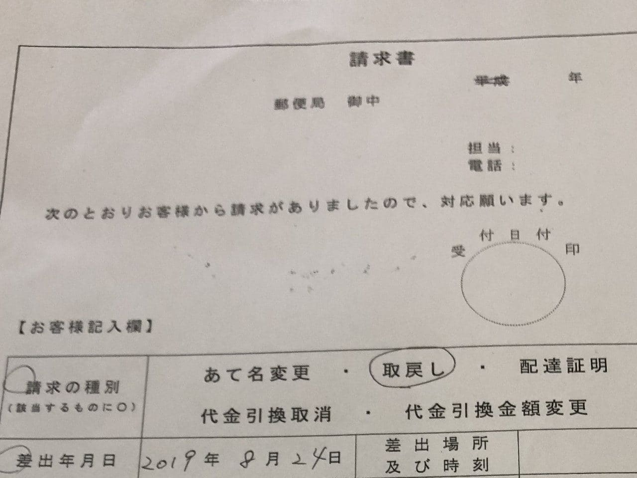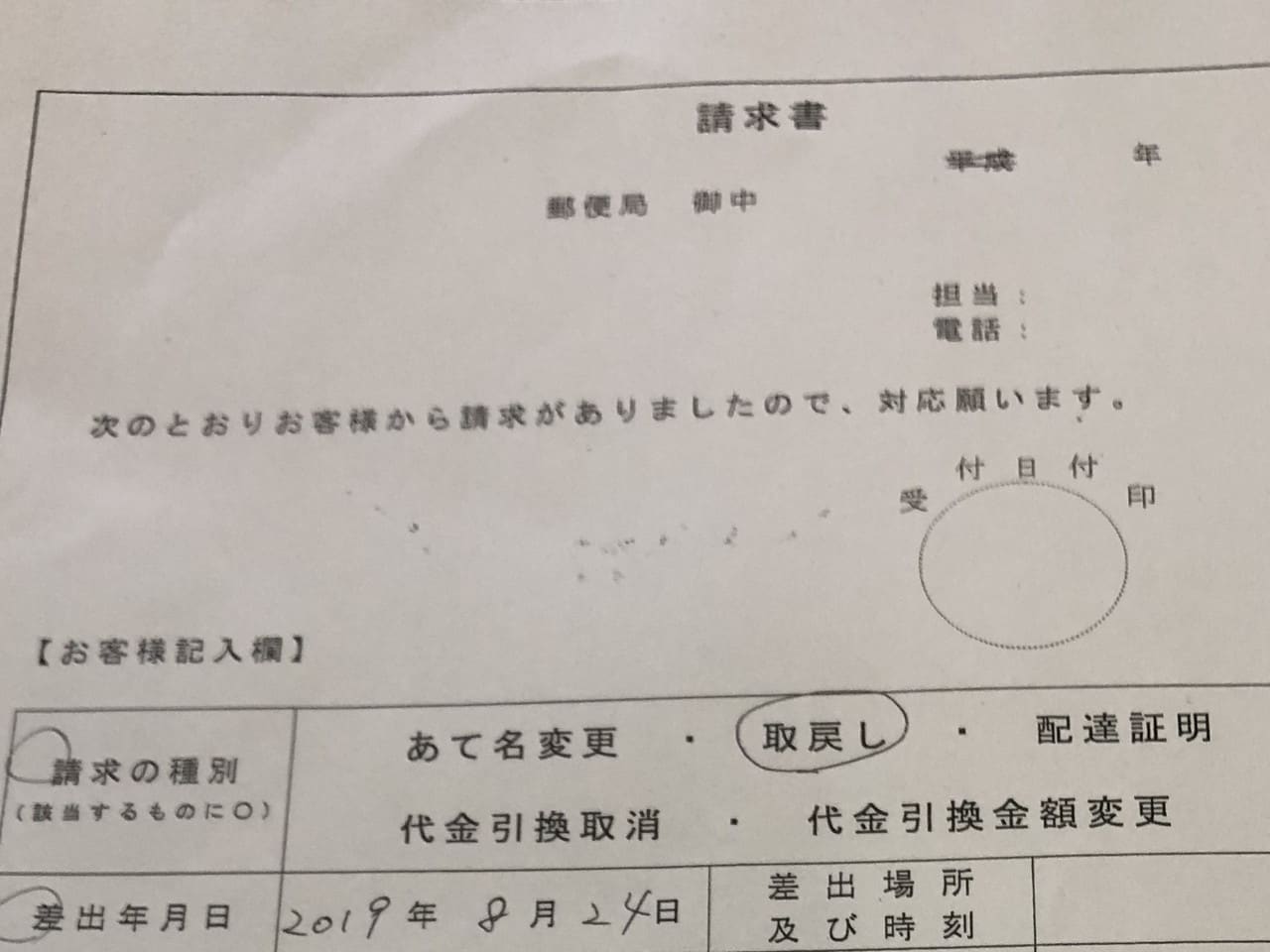 発送済みの商品を返送してもらう必要があったので、郵便局にその方法を教えてもらいました。
