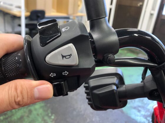 このハンターカブは、今までのウインカースイッチとは位置が変わっていて、今まではウインカースイッチが上でホーンボタンが下でしたが、ハンターカブはホーンボタンが上でウインカースイッチが下なので、逆です。