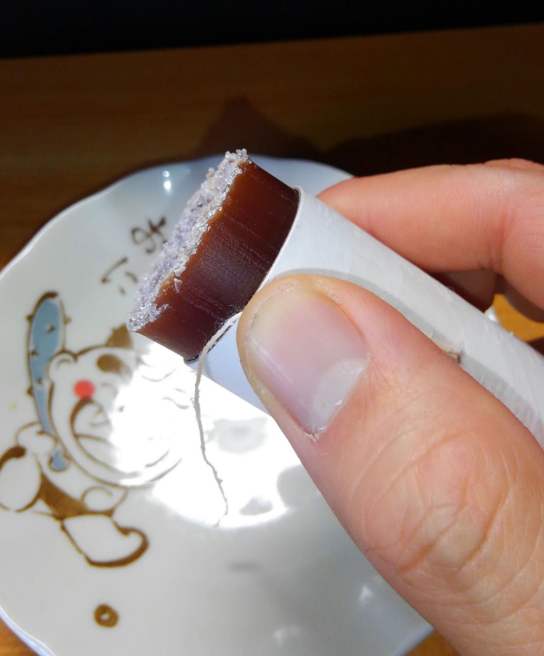 この羊羹をTwitterに投稿したときに、食べ方についてコメントいただいたので、
