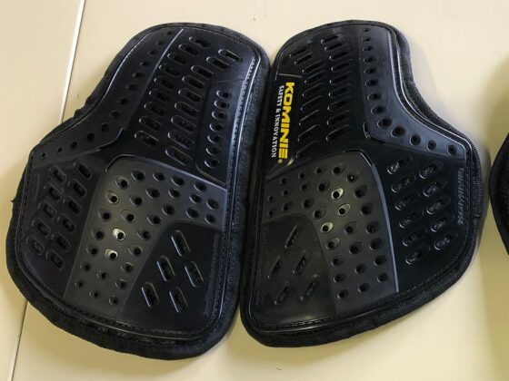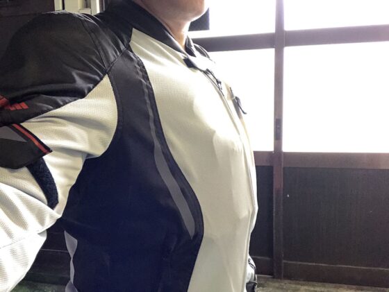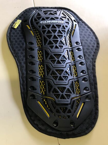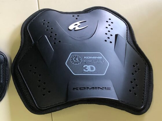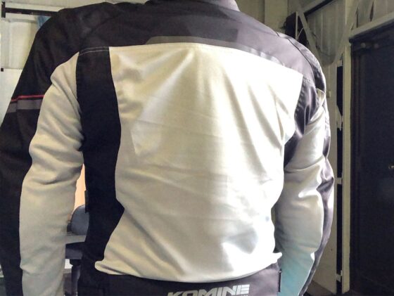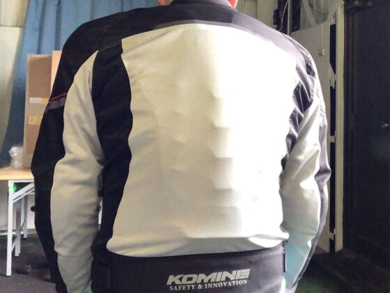 今のジャケットに付けているプロテクターは、背中には夏用の通気性のあるもの、胸にはジャケットが着やすいような分割式のものです。