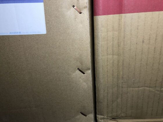 巨大ホッチキスで止まってる箱はそれも外してから…面倒ですが全部外さないと。