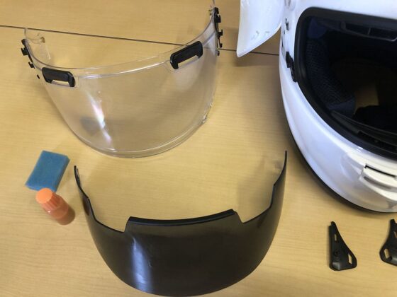 ただ、今お気に入りのヘルメット「AraiアストロGX」に付けているバイザー兼サングラス「PSサンバイザー」は上げたまま使うことがよくあるので、内側が汚れやすいことが分かりました。
