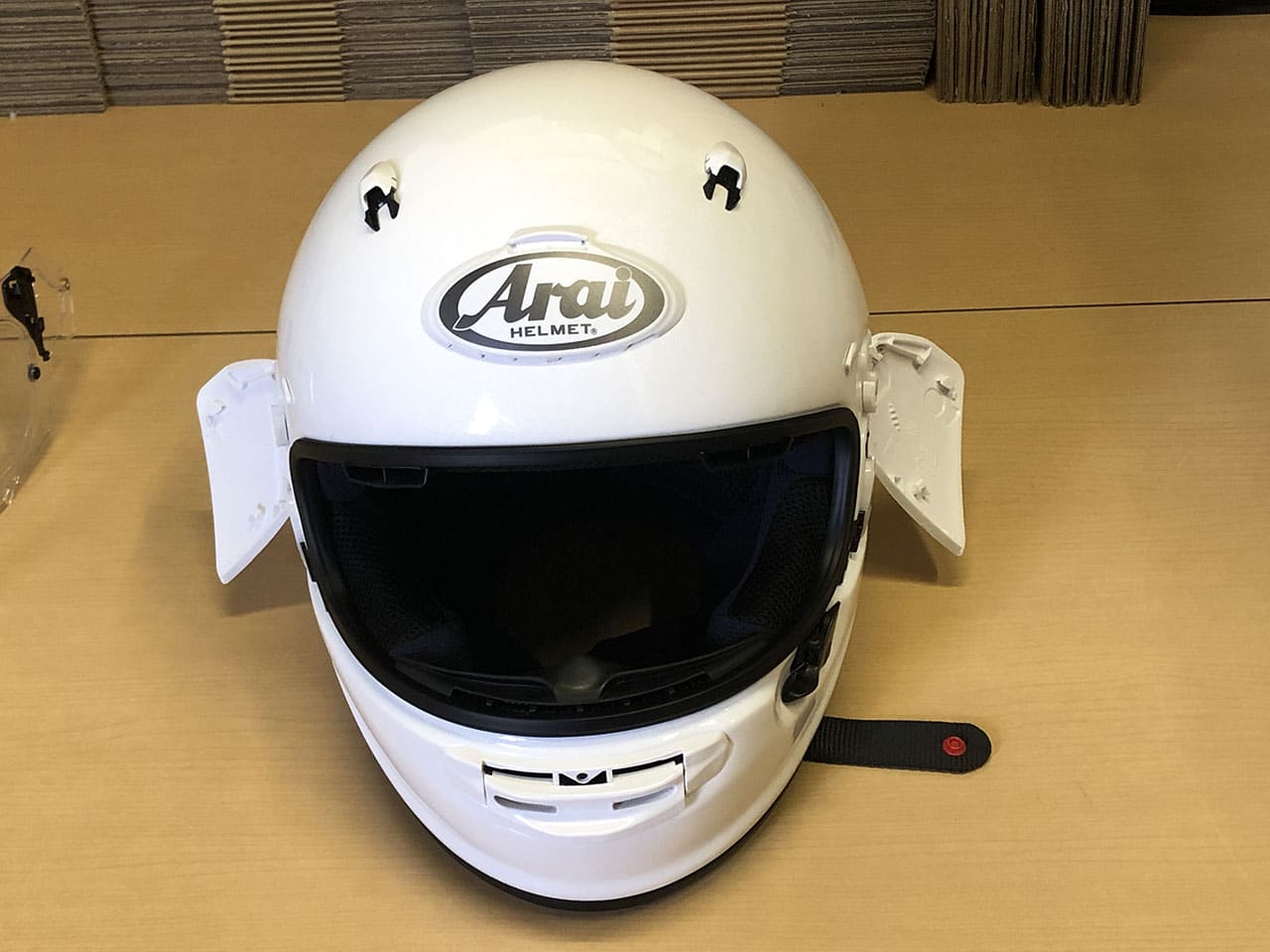 ヘルメット「AraiアストロGX」に付けたバイザー兼サングラスは上げている時間が長いので内側が汚れやすいかも。